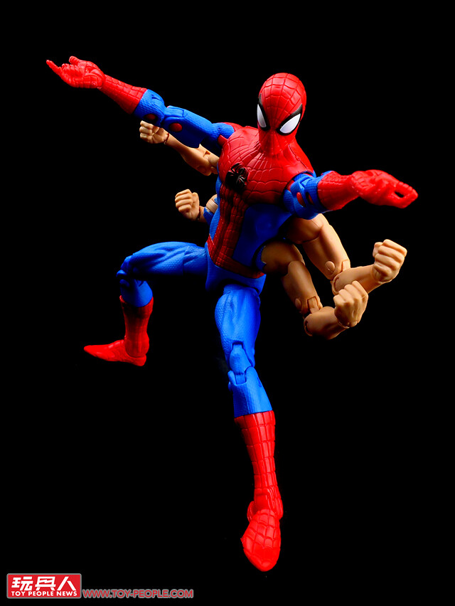 ▼本體的肩部採用了玩家稱作蝴蝶關節的設計,纖瘦的素體搭配自由自在的高可動,讓人輕輕鬆鬆就能表現出蜘蛛人的靈巧特質。