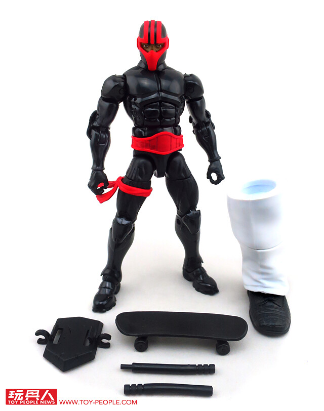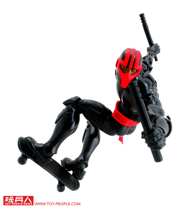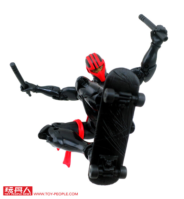 ▼人偶採用了初代夜鶇的漫畫元祖造型。內附有兩柄短棍、滑板及背甲,並附屬了金霸王的BAF左腳零件。