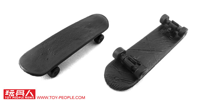▼夜鶇的招牌滑板當然也不能少。除了前後的兩組輪胎都能轉動,上下兩面也都各自施加了不同質地的表面處理。