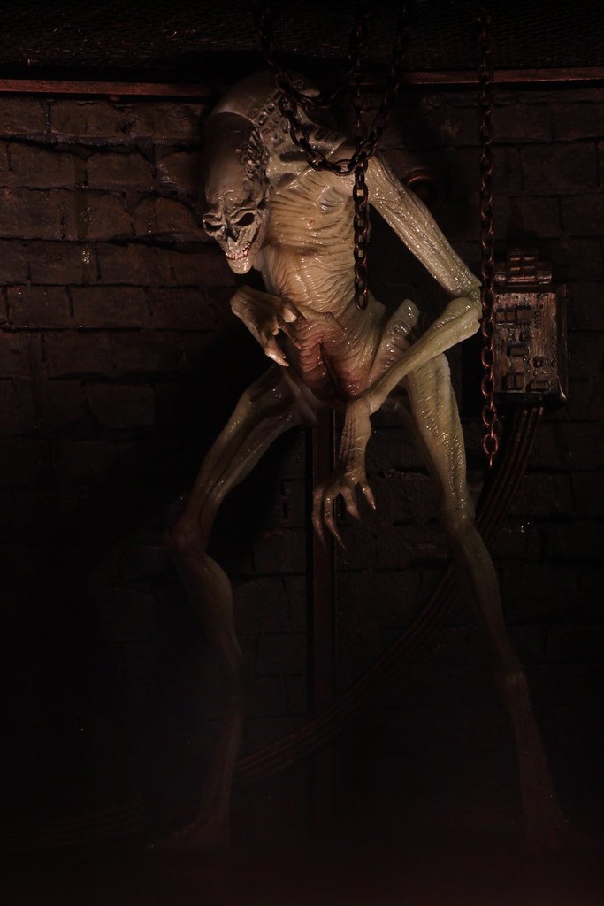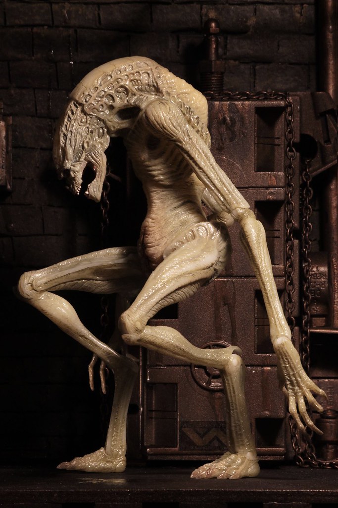 「新生異形 11 吋人偶」高約27.9 公分,全身共計30 處可動,根據電影設定再現了那詭異、恐怖的外型!結合了異形與人類的面龐、細長的四肢與手指、骨骼的形狀、肌肉纖維的紋理都施以細緻的雕刻,頭部的窟窿、皮膚、指尖部分的漸層塗裝更加深了本作的生物感!越看越嚇人啊~