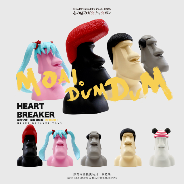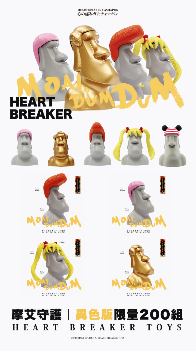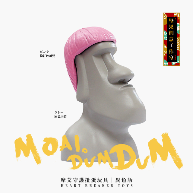 摩艾守護最有意思的就是摩艾本身的魔力與意義,而小人這組在一般版配色是以黑色頭髮配色,異色版戴上粉紅西瓜頭象徵幽默粉紅泡泡化解小人過節,突然覺得好萌呀~