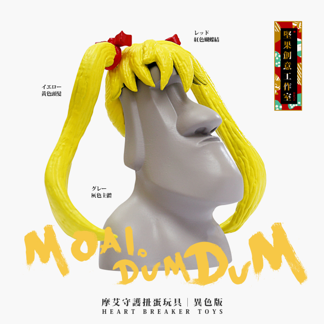 摩艾守護隱藏版色狼篇一直是討論度最高的,突兀的內褲造型加上包包頭,醜萌的感覺真的會讓人哭笑不得,一般版的原配色是白色身體配粉紅白相間內褲,而異色版則是更改為灰色身體,頭髮與內褲的顏色就沒有變化保有高中內褲的感覺,內褲長久不換的概念。