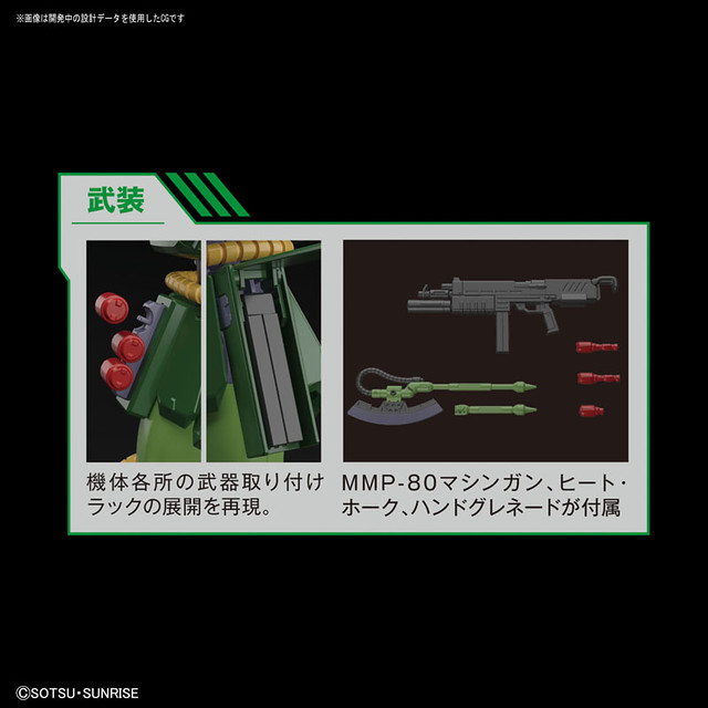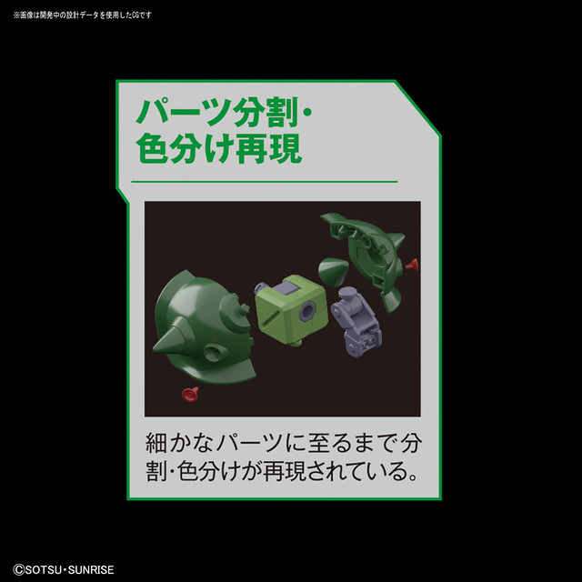 「RE/100 薩克II改」擁有相當精密的分件與分色,並且是首款不採用PC零件構造的 RE/100 商品,改以 KPS 材質追求組裝的簡易性。胸部裝甲可朝斜前方拉出、胸口駕駛艙蓋也能向前拉起,降低可動干涉。配件中收錄了 MMP-80 機槍、熱能斧、手榴彈,更有原創零件能再現有天線的指揮官用頭部,以及軍盔造型的B型頭部。