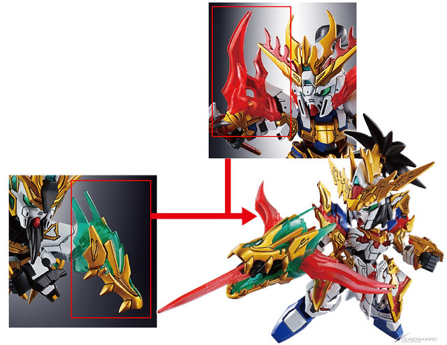 而全新的SD鋼彈《三國創傑傳》鋼普拉系列也應用了 HOBBY 事業部培育的最新技術更加強化。以「劉備獨角獸鋼彈」來說,全身的分件更加精細並大量使用透明零件,不須貼上大量補色貼紙就能再現帥氣的武將。在軀幹部份使用了雙重關節加強動作性,各個武將的特色武裝更能進行合體,再現劇中的必殺技,像是劉備獨角獸鋼彈、張飛神鋼彈與關羽ν鋼彈的合體必殺技「蒼炎激龍破」。