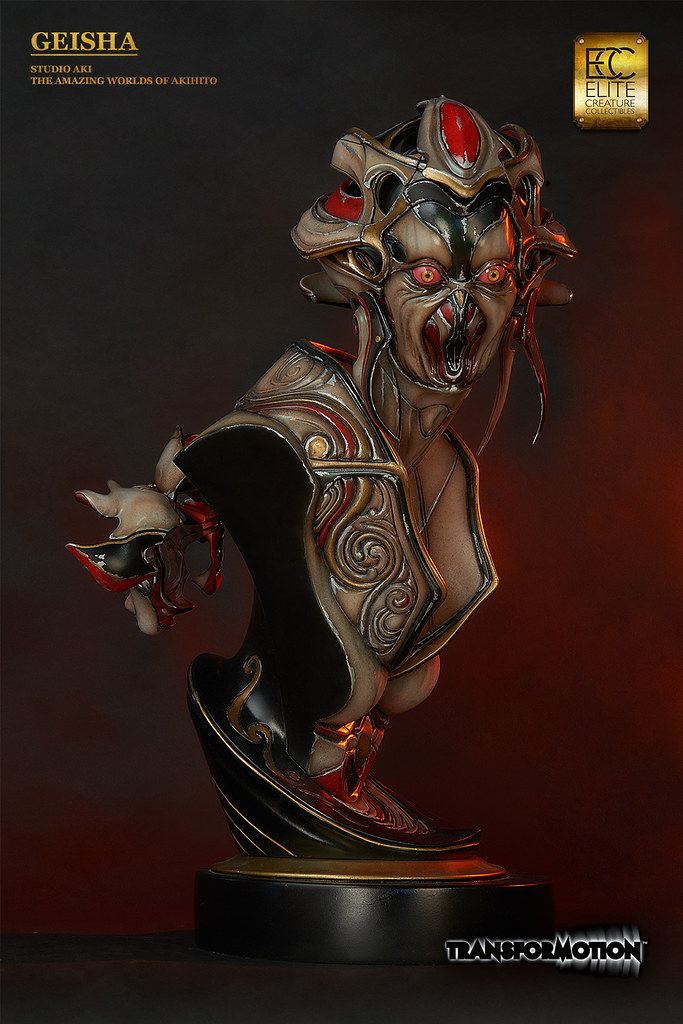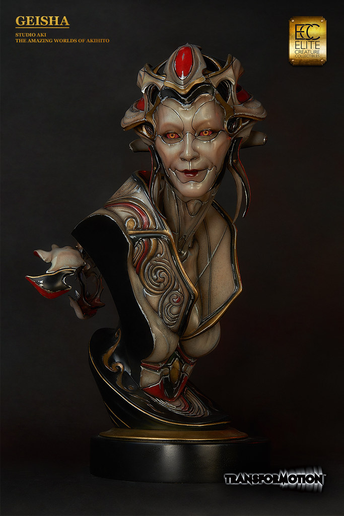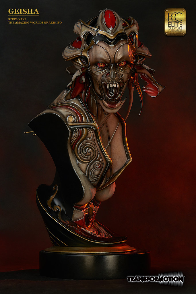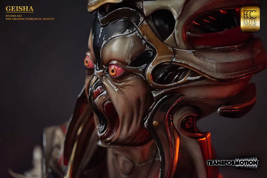 在「火焰骷髏」、「腦死」之後,由台灣特效化妝大師「王孫杰(Steve Wang)」成立,作品水準皆相當驚人的高端收藏品牌「Elite Creature Collectibles(ECC)」日前再度發表了一款來自知名特效大師「Akihito」所設計的1:1 比例胸像新作「藝伎」(GEISHA),全球限定399 體!!