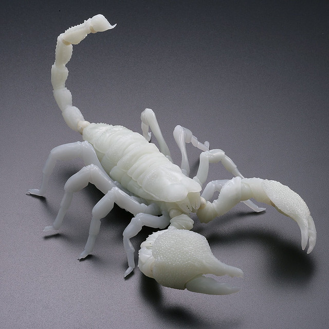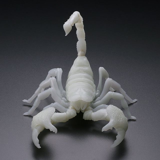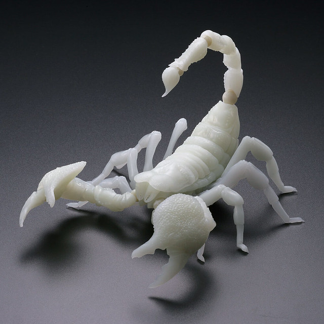 此次將蝎子發出螢光的自然現象以特別的「蓄光材質」來製作,大多數天然蝎子中暴露於紫外線(在紫外線下)時後,外在體表骨骼會發出綠光,螢光現像是蝎子具有的特徵,並且讓其外觀看起來非常漂亮,然而蝎子螢光反應的真正原因仍然是未知的。此次"帝王蠍夜光版本"一樣是以真實生物最大尺寸的實物大比例呈現,此作將於海洋堂線上商店限定(オンライン限定)販售,喜愛《REVO GEO》可動系列的玩具人可以參考一下歐!