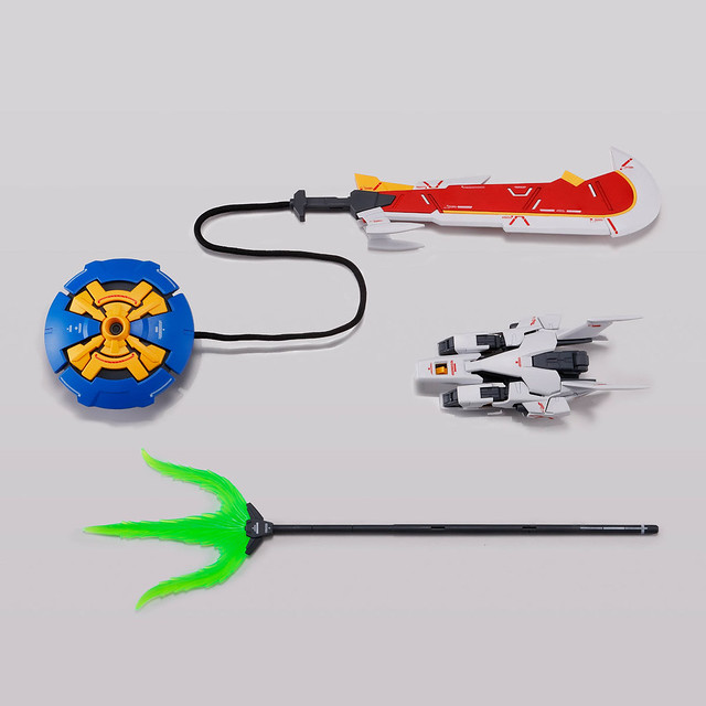 「MG 1/100 神龍鋼彈EW(獠牙裝備)」本體套件沿用了過去發售的「MG 1/100 神龍鋼彈EW」,包含光束長槍、龍爪等武裝都相同。追加了《敗者們的榮耀》原創武裝「獠牙」的新規零件,擁有 MG 規格的成形色與分件,再現厚重、巨大的魄力刀身。而神龍盾牌也追加了部份新規零件,能將與獠牙連結的纜線收納其中。