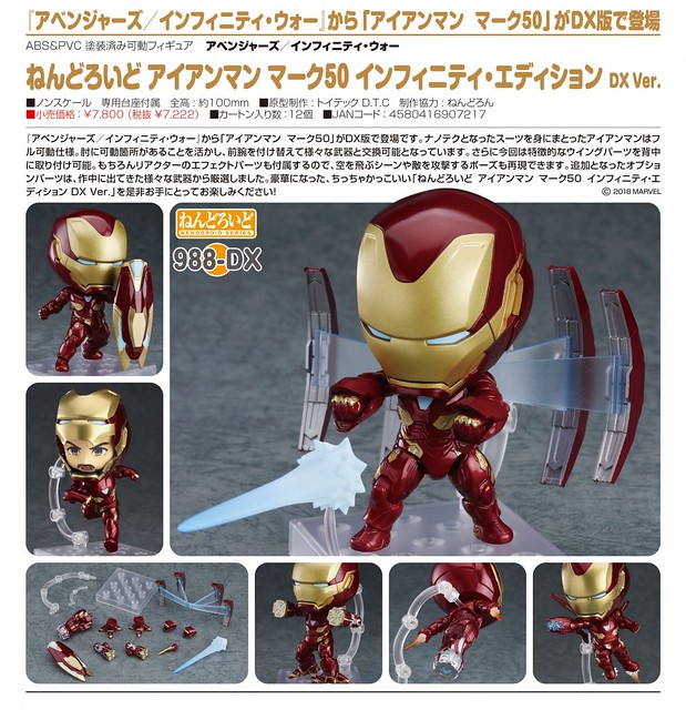 知名日廠Good Smile Company好微笑玩具公司暢銷熱賣的Q版「黏土人」(ねんどろいど)玩具系列,之前以《復仇者聯盟3:無限之戰》為題材已經公開過「鋼鐵人Mark50 無限之戰版本」後,這次將繼續推出「鋼鐵人 Mark50 無限之戰 DX豪華版本」,官網近日公開其宣傳照片以及販售相關資訊。