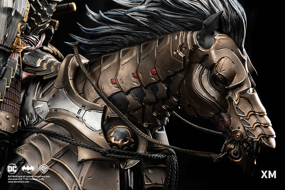 XM Studios 原創的「武士系列」是以漫畫造型為基礎,再注入濃厚的東洋武士風格,用獨特的造型重新詮釋DC 漫畫裡的人氣角色!「蝙蝠俠將軍 1/4 比例全身雕像」高約85 公分,長度也來到72 公分,除了極具份量的尺寸外,結合日本戰國、幕府時代將軍元素之後的造型更是令人大大驚艷!除了蝙蝠俠將軍本體身披華麗鎧甲之外,戰馬更也覆蓋著重裝盔甲,整體給人沈甸甸的重量感!