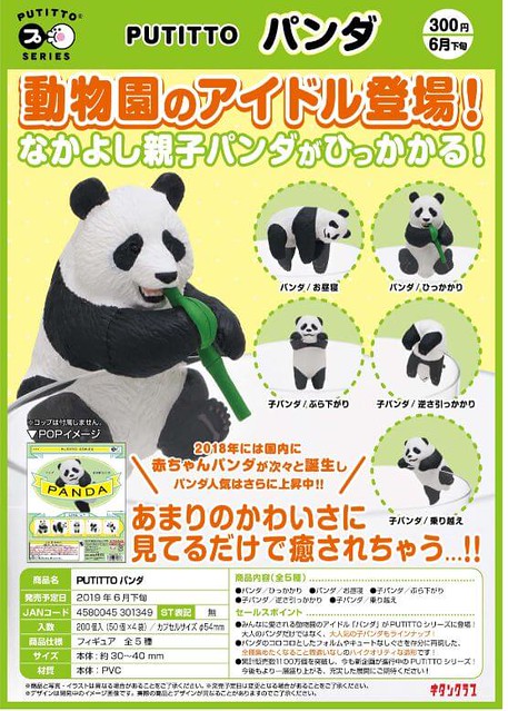 以杯緣子系列玩具暢銷爆紅的玩具廠牌「奇譚俱樂部(株式会社奇譚クラブ)」,結合各式動漫主題與杯緣玩具設計的「PUTITTO」系列,這次將以動物園裡面很可愛的「熊貓(パンダ)」為題材來推出PUTITTO 轉蛋作品,此次將推出有超級療癒的"熊貓"和"小熊貓(幼子熊貓/子パンダ)"兩種不同體型,總共約有五款不同種類可以收集,喜愛《PUTITTO》系列作品的玩具人可以參考一下歐!