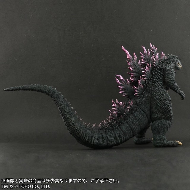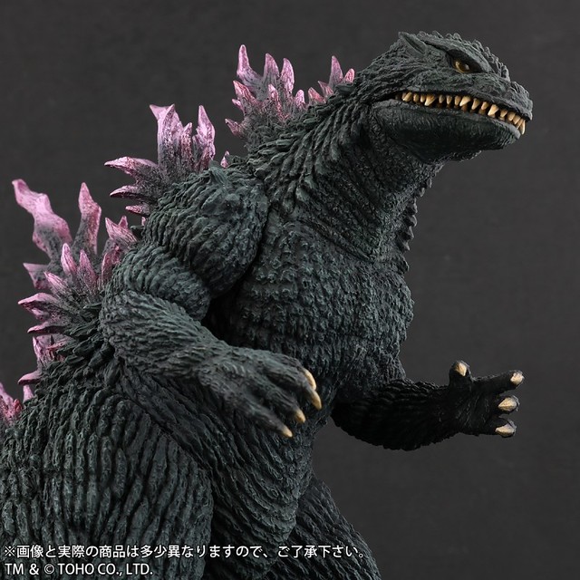 「東寶大怪獸系列 哥吉拉(1999)」忠實再現千禧哥吉拉凶狠的眼神、如爬蟲類般的大嘴、銳利的皮膚等造型,牙齒、利爪施以泛黃的舊化塗裝讓作品更具生物感,以烈焰為意象的尖銳背鰭也擁有精密的造型,並使用金屬紫塗裝,呈現出搶眼的光澤。此外,於少年 RIC 販售的限定版更追加了張開大嘴的「下顎零件」與「船零件」,能再現劇中令人印象深刻的咬船場景!