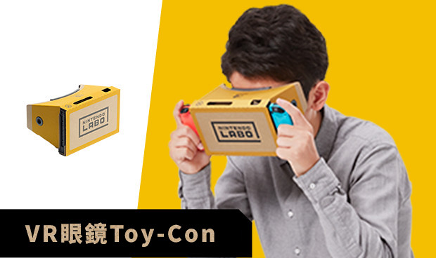在最新商品《Nintendo Labo Toy-Con 04: VR套裝》更融入了簡易的 VR 裝置,能夠使用紙板製作出拿在手上就能進行操作的「VR眼鏡Toy-Con」,進一步與火箭筒、照相機、大象、小鳥、風等五種新型 Toy-Con 結合後,就能在遊戲世界中體驗到與身體同步活動的 VR 效果!