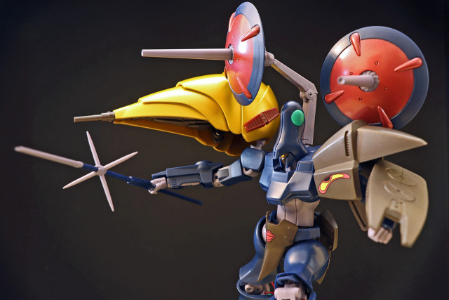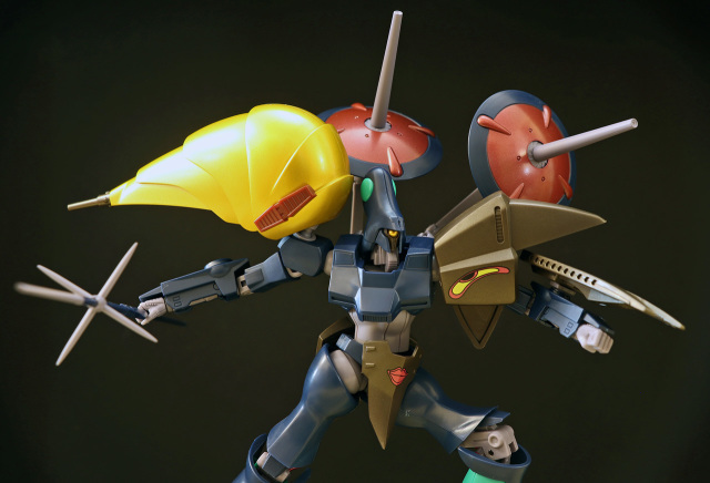 Armament: G. Roon long spear x 1, triple flogger x 1, Bat-shu binder x 1 (S-mine x 2, missile x 24), Auge round binder x 1 (power launcher x 1), Ashura Temple circus binder x 2 (power launcher x 1 each)