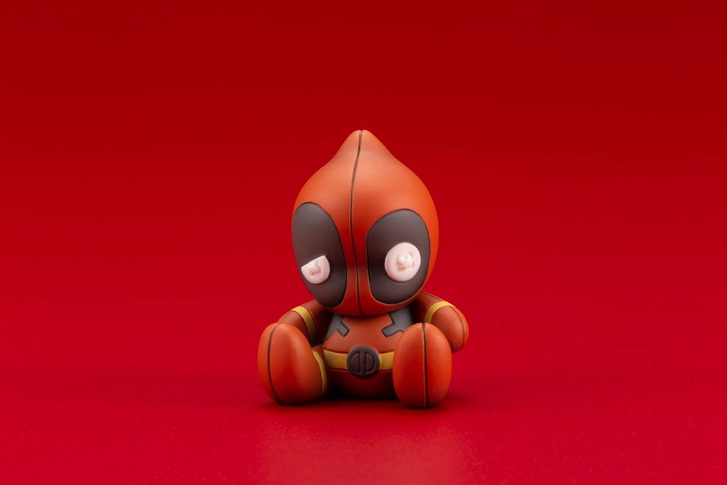 「MARVEL美少女 多米諾」高約22 公分,再現了山下俊也原畫中、更為稚嫩可愛的臉蛋與柔順的黑髮,雙手舉槍、回頭一看的多米諾彷彿察覺到了危機正在逼近?!黑、藍、灰配色的貼身戰衣設計極具現代感,各處的扣環有著金屬質感,服裝黑色部分漂亮的珍珠光澤十分搶眼!玲瓏有致的身形線條也逼真形塑,緊身衣因為豐滿的上圍、臀部而產生的皺摺實在令人啊嘶~地台是以骨牌為題製作;除此之外,還有一個可愛的死侍娃娃可以搭配展示喔。