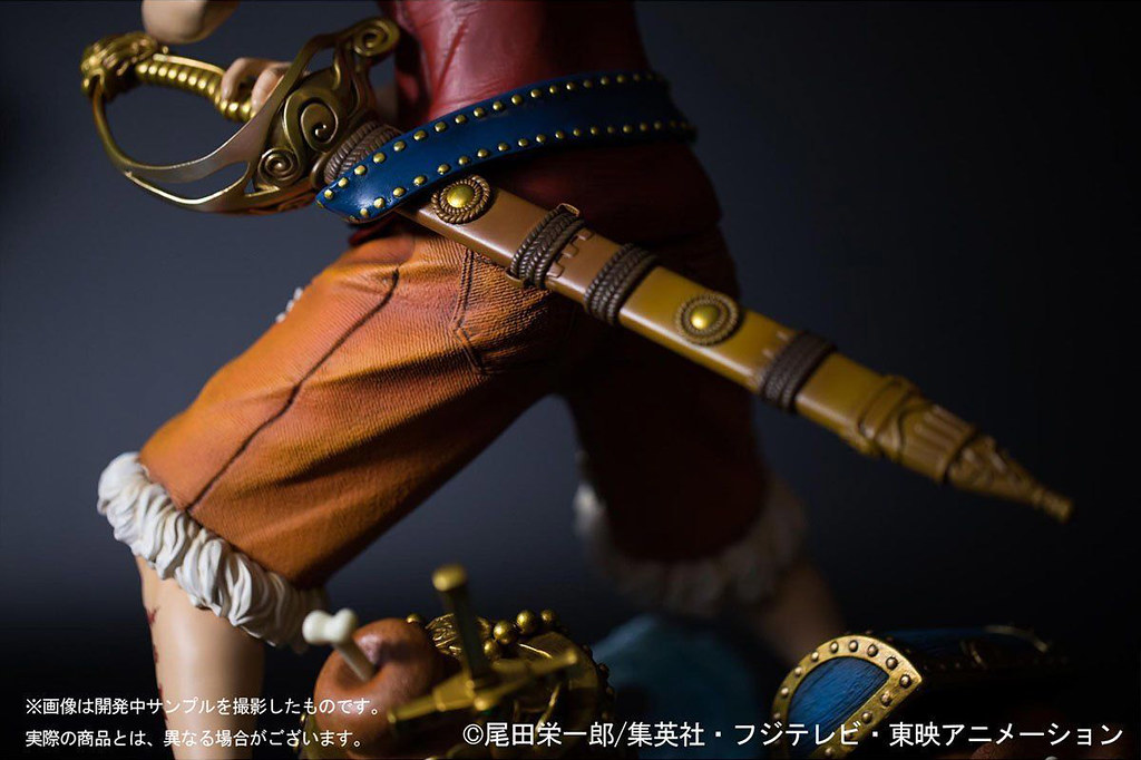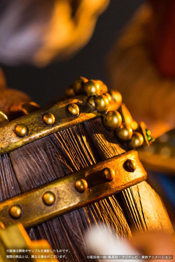 這次是以TV電視動畫《航海王》的DVD公式系列「Log Collection(ログコレクション)」包裝插圖的造型來立體化這次的作品,同時是使用「樹酯(ポリウレタン/Polystone)」材質來製作,將魯夫充滿自信的表情和軍刀等飾物的細節都精彩再現,另外,針對故事海賊王的形象,還附有特殊造型的底座、波浪、寶箱和寶物也製作的相當仔細,在"波浪"運用藍色透明樹脂來表達其流動感。