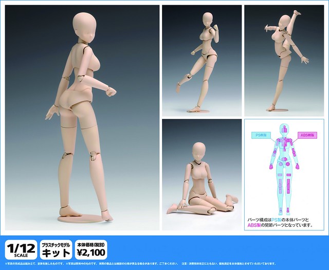 此次組裝作品全身有多處可動關節的設計,有兩種不同手首姿勢配件可以替換,作品是運用易於加工的PS和ABS樹脂複合性材質來生產的,關節是PS樹脂;身體四肢則是ABS樹脂,玩具人如果有什麼動漫女性角色人物想以這個素體來進行改造,應該是很容易製作的,喜愛1/12比例尺寸可動系列的玩具人可以參考一下歐!