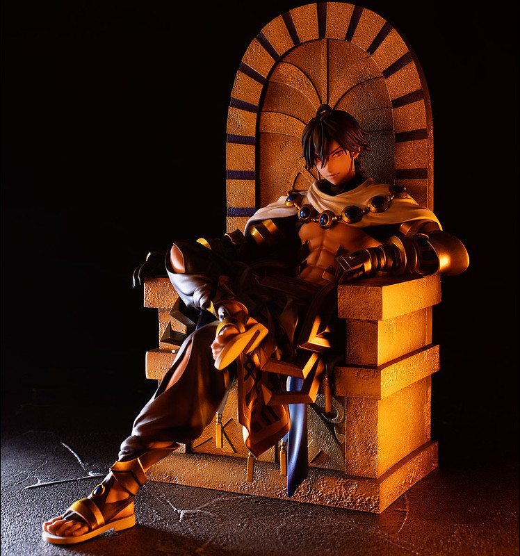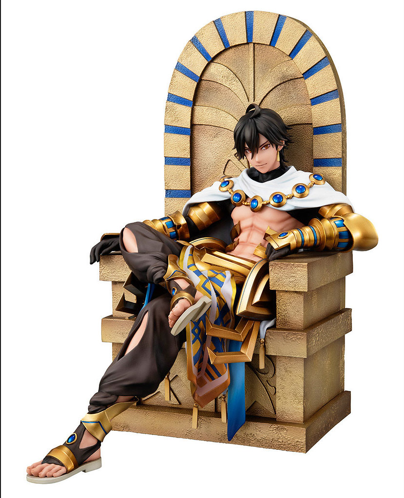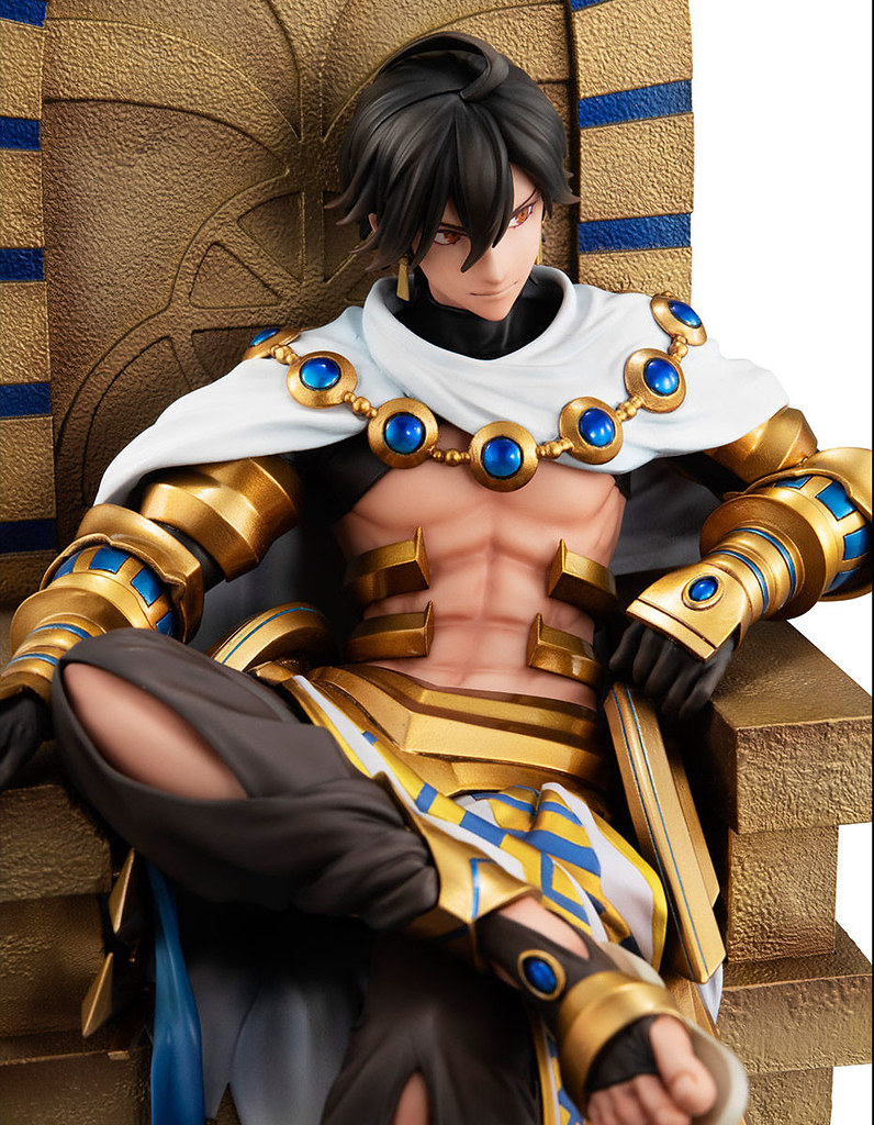 「Rider/奧茲曼迪亞斯 1/8比例模型」將神王乘於王座之上的威嚴之姿立體化,奧茲曼迪亞斯以傲慢、居高臨下的眼神睨視,露出充滿餘裕的笑容,帥氣而令人崇敬。全身貴氣的服裝具備精密的細節,並施以奢華的金色塗裝。與神王相符的王座表面也打造出鑄造金屬般粗糙的表面,極具層次的金色塗裝讓整件作品更具重量感。