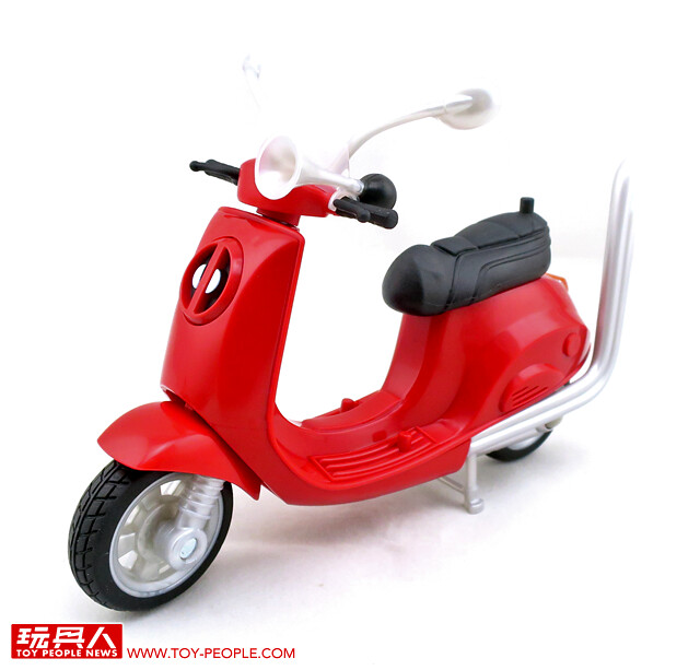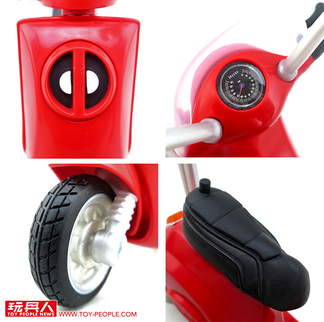 ▼車頭有著鮮明的立體招牌logo,儀錶板是以貼紙再現(死侍:「貼反了啦阿姨」),前後輪都是採用橡膠胎,座椅雖然是硬膠但仍有作出仿塑膠皮的質感。