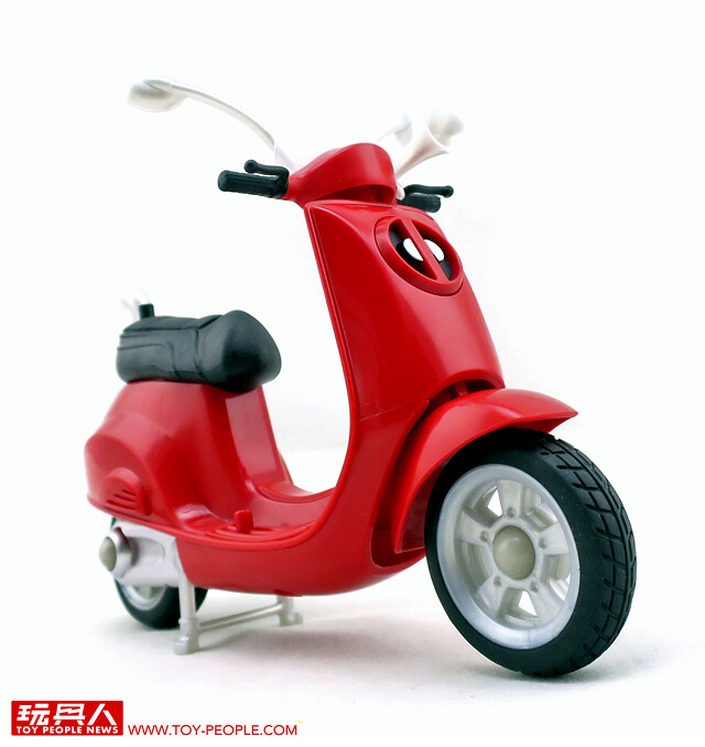 ▼附屬的紅色摩托車,頗有80年代的Vespa(偉士牌)老車感。