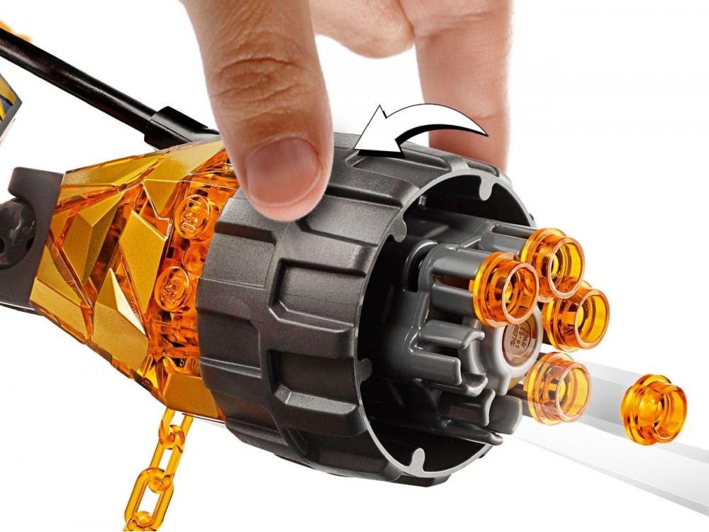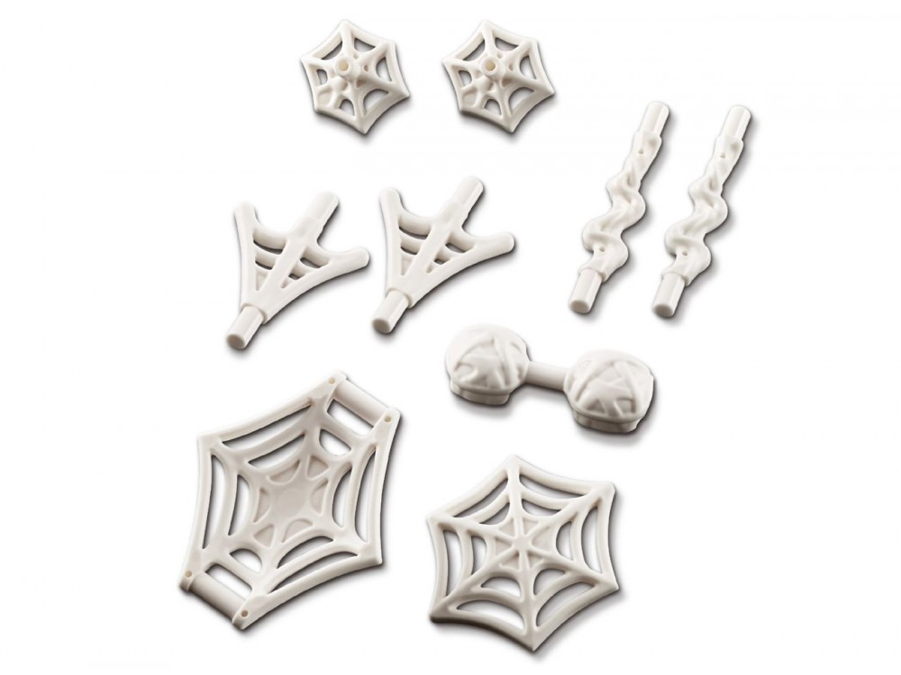 接下來是以類似浩克毀滅者的機甲結構來呈現的巨大「熔岩人(Molten Man)」!不但有利爪、子彈發射器的機構,採用半透明的亮橘色鎖鏈、細長子彈零件所營造出的岩漿滴落效果也很有意思呢~人偶部分包含身穿黑色暗影戰衣的蜘蛛人、神秘客與一位消防員。