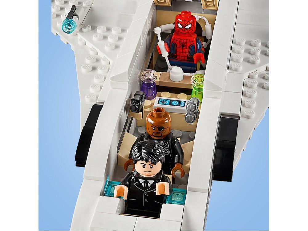 最後要看到的是載具組,以白色為主調的史塔克噴射機擁有多個可動機關,還可以讓人偶坐進去,人偶部分包含了蜘蛛人、尼克·福瑞、快樂(Happy Hogan)與神秘客!看來這次神秘客戲份很多啊,三組裡面都有他的身影~但可惜的是好像沒有附屬露臉的頭部零件。