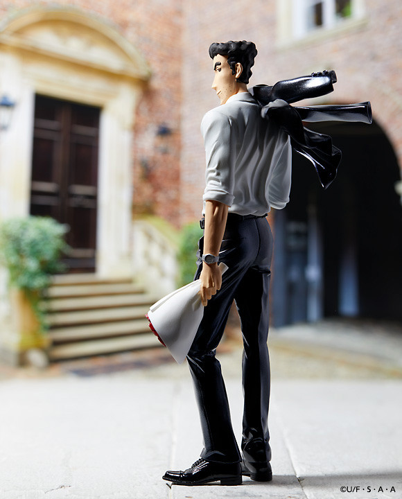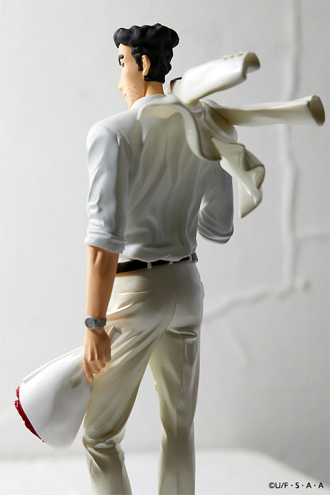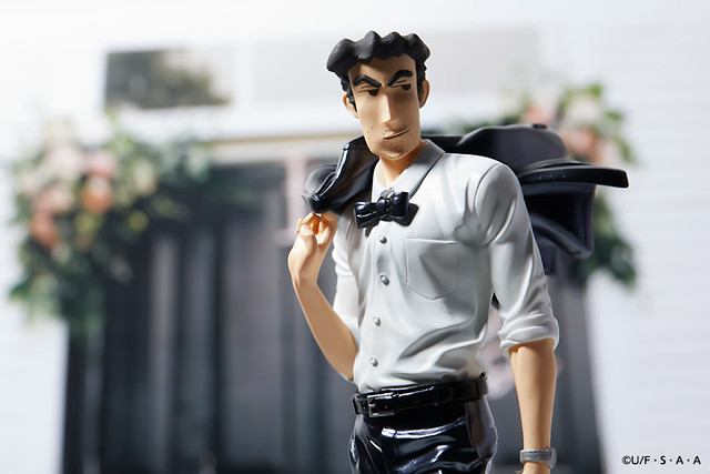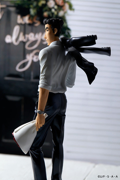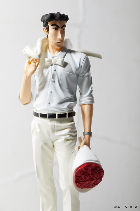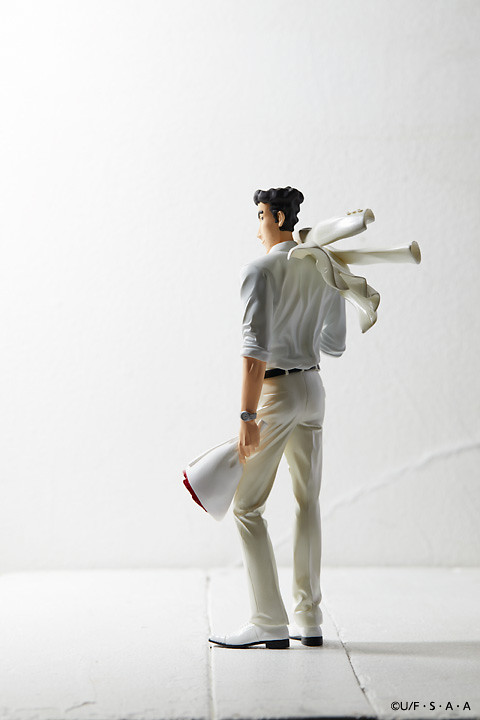 在前作中,攝影師 Shara 運用了公司大門、車站、月台等上班族必經場景,塑造出野原廣志身為可靠課長的形象,彷彿毫無 32 年房貸的壓力,運用了自然光源呈現了作品的服裝皺摺、肌肉線條等細節。而這次的歸來則邀請到攝影師米花裕一郎為兩款新造型拍攝,以太陽的自然光為主題,拍攝出等待愛妻到來的暖男,同時也毫不浪費作品動感的造型,讓陰影面極為立體。