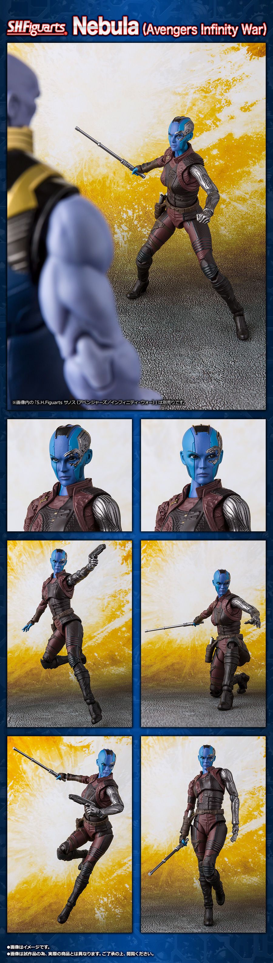 知名日廠BANDAI SPIRITS 公司收藏事業部發行,兼具造型、色彩的經典「S.H.Figuarts」可動系列,之前以 《復仇者聯盟3:無限之戰》為題材已經公開過「浩克」、「索爾」、「黑寡婦」、「火箭浣熊」、「巴奇」、「獵鷹 」、「戰爭機器馬克4 」 以及「鋼鐵人Mark50 」之後,將繼續推出「涅布拉(ネビュラ)」系列的續作品,官網近日公開其宣傳照片以及販售相關資訊。
