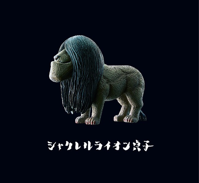 本次的全新企劃實在是太猛太有趣啦!爆笑的戽斗下巴跟帶著詛咒、怨念而來的貞子竟然如此合拍,由於黑色長髮蓋住了雙眼,使本作更具想像空間,在手、腳指甲的部分也施以血紅色塗裝,而且是連戽斗獅子貞子都有喔XD,除了站立、爬行狀態的貞子外,從電視機爬出的貞子更是相當經典,而那口出現貞子的井還做出了損壞的造型與舊化,嚇人指數再升級,本作唯一的動物形態獅子貞子也散發出獨特的異樣感受,這套超惡搞的轉蛋一定是要全收的呀!