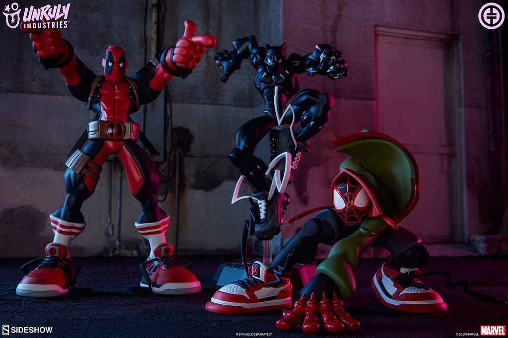 「Unruly Industries」是Sideshow Collectibles 日前所推出的全新設計師玩具系列,收錄了多位設計師所重新詮釋的DC、漫威超級英雄,以及各種各樣的生物,可說是風格相當多元的一個系列;本次的帝查拉是由Tracy Tubera 所設計,他熱愛球鞋、漫畫、超級英雄的豐富色彩與設計,並深深著迷於探索英雄、球鞋背後的起源故事;將球鞋與英雄融合在一起的設計風格便是Tracy Tubera 作品的一大特點,他也將自己設計的幾款軟膠作品稱為「Super Heroes in Sneakers(S.H.S.)」。想看更多他的作品可以到這裡欣賞喔~