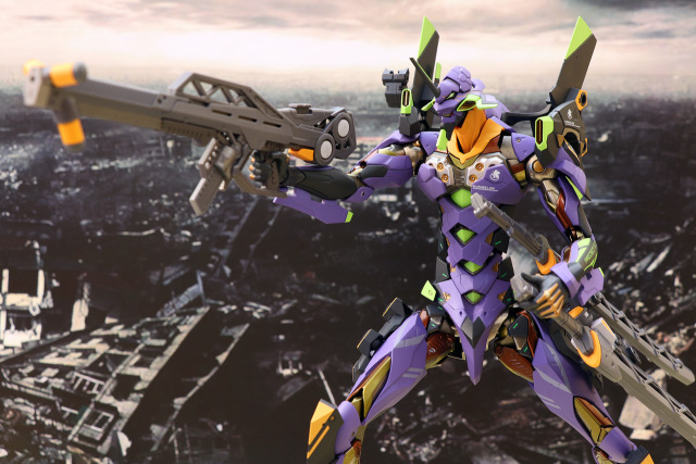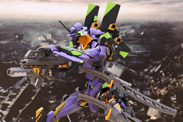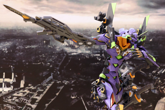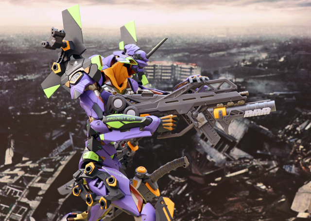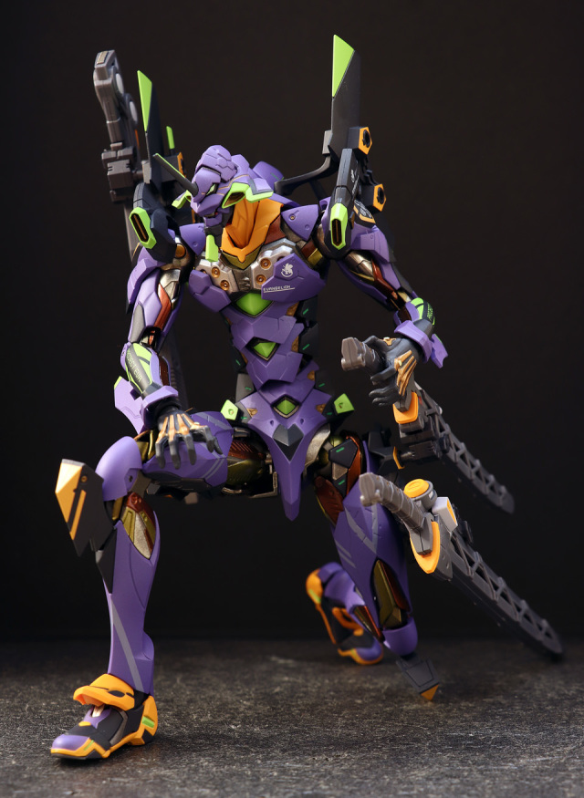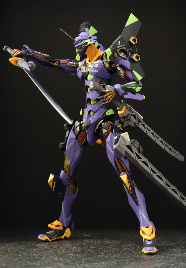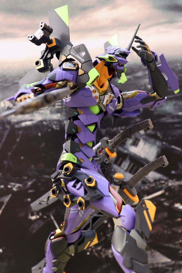 雖然賣點之一是其可動性,但其實本體仍有一些改善空間。頭部左右的可動性一般、腰部及大腿的向後擺幅有限,另外因造型關係如果動作擺幅太大的話有機會 "撞甲",除此之外可動性基本沒啥可以挑剔了。QC 合格,但花痕、未除塵就噴色及移印偏移等情況亦十分常見。另因腳掌設計上較細,故站立時須特別注意平衡問題。配件犯規級豐富。武裝包括了10只造型手、陽電子步槍 (可以自由配搭長槍管、刺刀和榴彈發射器)、能量臍帶電線、手槍、高振動粒子刀、孫六滅絕刀、短刀、刀鞘等熟悉的武器,而各武裝都能掛載於巨型升降機台底座,真狂!