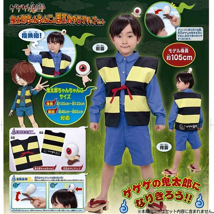 知名日廠Bandai萬代玩具公司這次將以人氣動畫《鬼太郎》為題材,來推出一款小孩尺寸的「鬼太郎背心 & 眼球老爹 Cos服裝組合(鬼太郎ちゃんちゃんこ&目玉おやじクリップセット)」(名稱暫譯),這次還將「眼球老爹」設計成在髮夾上面,讓他可以在頭髮上面的模樣,完整再現劇中所讓大家熟知的經典畫面,套裝不含藍色上衣和藍色短褲,提供給喜愛《鬼太郎》系列作品的玩具人參考。