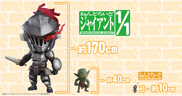 尺寸竟然是一般黏土人的17倍大!?只有手掌大小的黏土人無法滿足你嗎?為了滿足顧客需求,「黏土巨人」登場啦!!擁有和人類同等大小的可怕尺寸,其名為「黏土巨人」!系列第一彈推出全高約 170 公分的 超帥「哥布林殺手」!配件「哥布林」也以40公分尺寸呈現!每個冒險者公會都必備一隻!