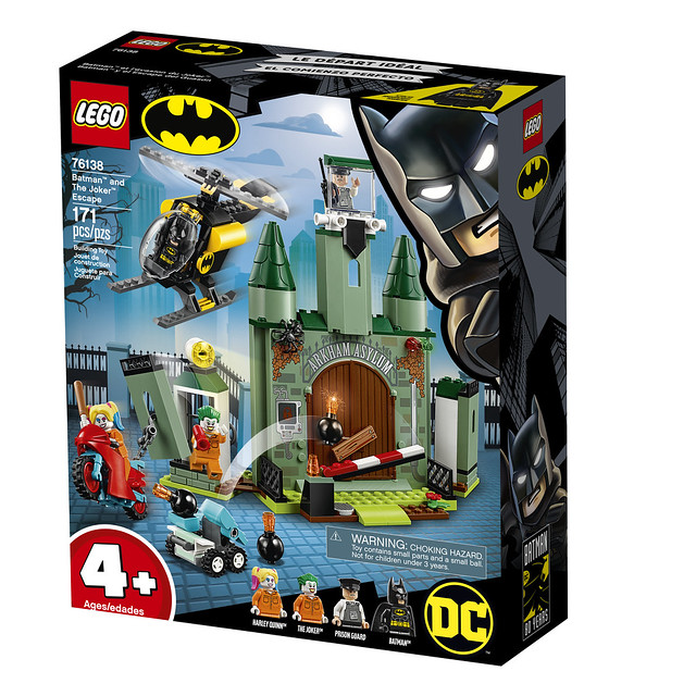 這組的場景雖然陽春但「阿卡漢瘋人院」的門面其實還不錯呢!人偶共有穿著囚服的小丑、小丑女、守衛,以及開著直升機前來阻止逃獄行動的蝙蝠俠。