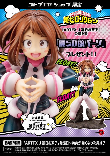 日本壽屋玩具公司(KOTOBUKIYA)旗下打造日本動漫畫、遊戲角色精緻立體作品的「ARTFX J」系列,以大人氣《我的英雄學院》為題材已經公開過「綠谷出久」、「轟焦凍」與「爆豪勝己」作品之後,將繼續推出「麗日御茶子 (麗日お茶子 )」系列的第四波續作品,官網近日公開其宣傳照片以及販售相關資訊。