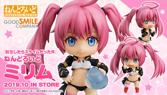 2019年4月9日新增官方宣傳圖以及販售相關資訊,在故事當中「蜜莉姆・拿渥(ミリム・ナーヴァ)」是個破壞暴君大魔王的設定,雖然有著普通少女的外表,強大而且好奇心旺盛的她,本身就是不可理喻席捲而來的強烈風暴。此次將劇中有輒可愛外表傲嬌蜜莉姆以Q版黏土人系列來呈現真是十分適合,附有「普通臉」、「笑臉」、「驚訝臉」三種不同表情配件可以替換,還有可以抱著的「利姆路」,對《關於我轉生變成史萊姆這檔事》有興趣的玩具人千萬別錯過了歐!