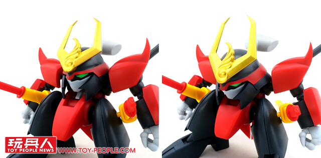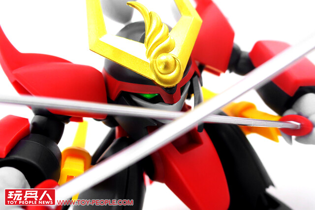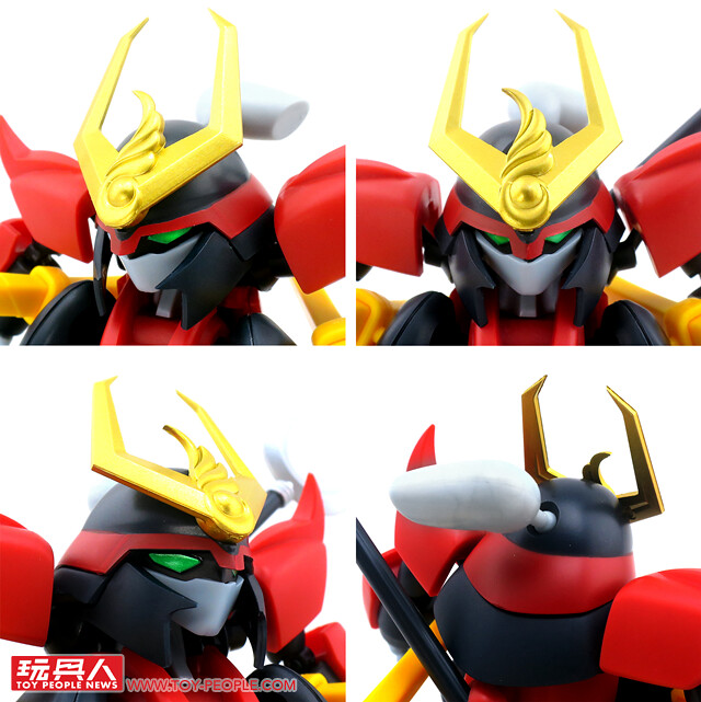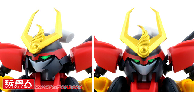 ▼ 頭冠處的「火焰紋章」是劍部一族的家紋,兩側天線則是讓電波更容易傳達的天線。商品使用亮金色進行塗裝,金屬質感相當不錯。