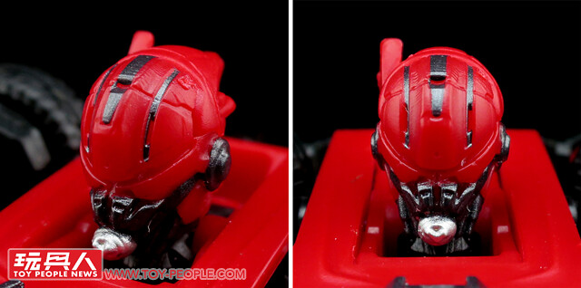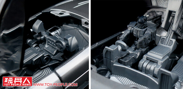 ▼駕駛座可以開啟,內裝有作出方向盤、儀表板等造型,更重要的、由頭部變形而來的小人可以像過去的頭領戰士玩具一樣搭乘其中喔!