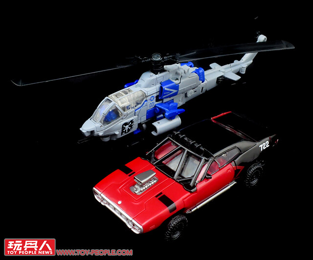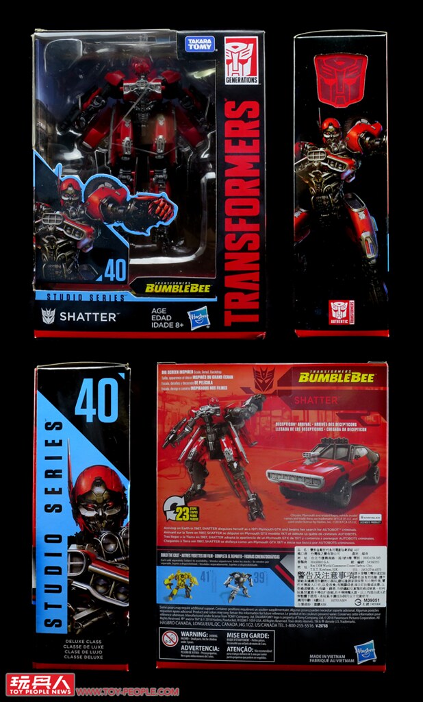 ▼No. 40「殺無赦」(Shatter),來自今年的獨立電影《大黃蜂》(Bumblebee)。為求目的不擇手段,作風心狠手辣的狂派(Decepticon)女戰士,為了追擊柯博文(Optimus Prime)與博派(Autobot)餘黨,夥同飛天腿(Dropkick)尋線來到地球,與人類假意合作,對B-127(即大黃蜂)展開獵捕行動。具備了三變金剛(Triple Changer)的能力,在地球上掃瞄了1971年的美系肌肉車普利茅斯(Plymouth)GTX,以及獵鷹式戰鬥機(Harrier Jump Jet)作為擬態,本次的玩具選用前者作為其載具模式。