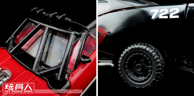 ▼車窗採用透明零件製成,輪框和722的拉花字樣也都還原了劇中的造型。
