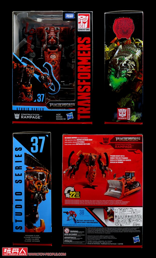 ▼No. 37「狂虎」(Rampage),同樣登場於《變形金剛:復仇之戰》的工程金剛成員,擬態為紅色的推土機Komatsu D575A,與戰犬(Ravage)在沙漠中以山姆雙親為人質,逼迫山姆·魏瓦奇(Sam Witwicky)交出領導母體(Matrix of Leadership),與大黃蜂展開一場驚心動魄的肉搏戰後壯烈身亡。除了推土機和機器人模式,本次的玩具同樣具備了合體為蹂躪者的三變設計。