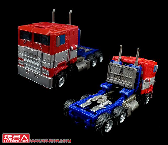 ▼載具模式登場!與過去電影作品中的長鼻卡車頭最大的不同,就在於《大黃蜂》中的柯博文再次回歸為老玩家們所熟悉的G1風格「平頭」卡車,在變形機構的設計上,經過了多重的翻轉與折疊,幾乎在車輛模式中看不出機器人的特徵,光是這點就絕對值得親自把玩、仔細體驗設計師的用心!
