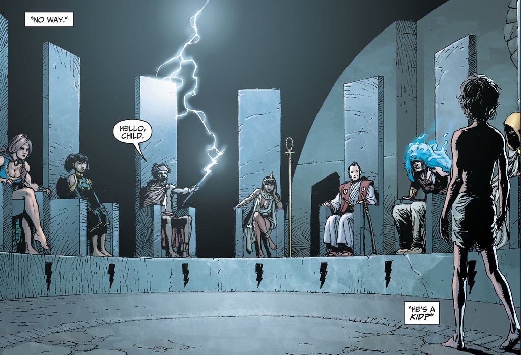各位可以看到圖中各種文化和膚色人種都有,這代表著世界每一種魔法都在這七人手上,更能因此與地球所有神祇聯繫,所以這也是為何法師沙贊能將埃及神的力量給予黑亞當,又能給予不一樣的希臘神力來做為比利的力量。