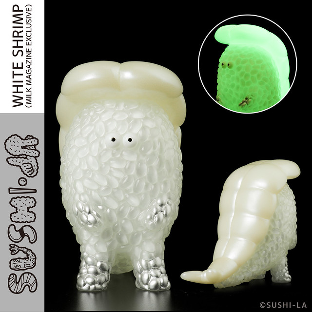 「上海國際潮流玩具展(Shanghai Toy Show,STS)」即將於本週五(4/12)盛大展開!由日本知名插畫家NakaoTeppei(ナカオテッペイ)與千值練合作推出的超人氣軟膠怪獸「壽司拉」這次將發行兩種新的MILK MAGAZINE 限定版本!「白鮪魚赤身 夜光版」(暫譯,WHITE TUNA -GID-)與「水煮白蝦 夜光版」(暫譯,WHITE SHRIMP -GID-)!將在會場的MILK A28 攤位限量販售!!