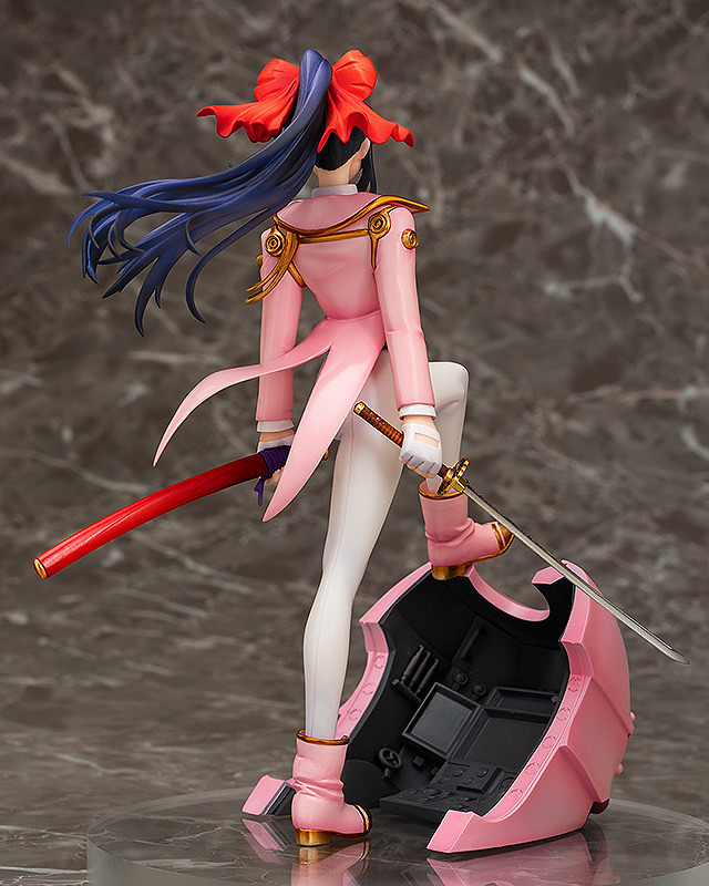 「真宮寺櫻 1/9比例模型」以人物設計松原秀典老師繪製的插畫為基礎製作,將身穿花組戰鬥服、英氣凜然的真宮寺櫻立體化,手持愛刀「靈劍荒鷹」跨在光武的駕駛艙蓋上,專注寧是前方的模樣極度迷人。不僅服裝造型精細,各處部位更配合質感差異,採用不同的櫻花色塗裝,十分講究,光是看著就能感受到濃厚的太正浪漫風情!