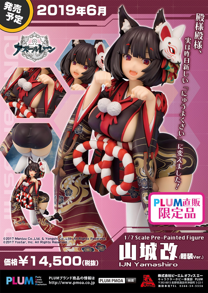 日本模型品牌 PLUM (プラム)繼「哈曼改」、「埃爾德里奇」後,再度於今(10)日發表了出自人氣手機遊戲《碧藍航線》的第三款作品「山城改 1/7比例模型」預計於 2019 年 06 月發售的消息。