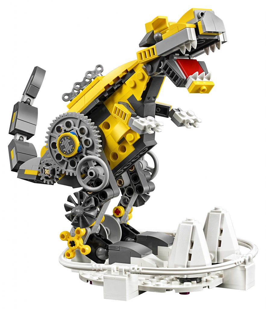 這次的盒組共有864 片零件,將巨大展品濃縮成精巧尺寸,並兼顧造型還原度,再次讓我們感受到設計師的強大,由於得寶磚太大,所以原本紅黃色的得寶恐龍是採用一般的System 積木來堆砌,但那可愛的花紋依舊是高度再現了呢!System 恐龍在腿部有著逼真的肌肉造型,而以科技磚拼搭出來的恐龍也十分帥氣,不但保留了原展品頗為兇暴的樣貌,齒輪、發條......等零件使其極具機械感,再加上展示底座,如果有前往LEGO House 的話千萬千萬不能錯過呀!!!