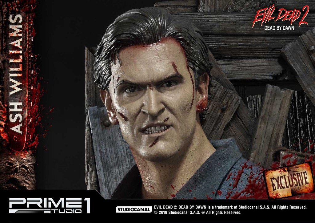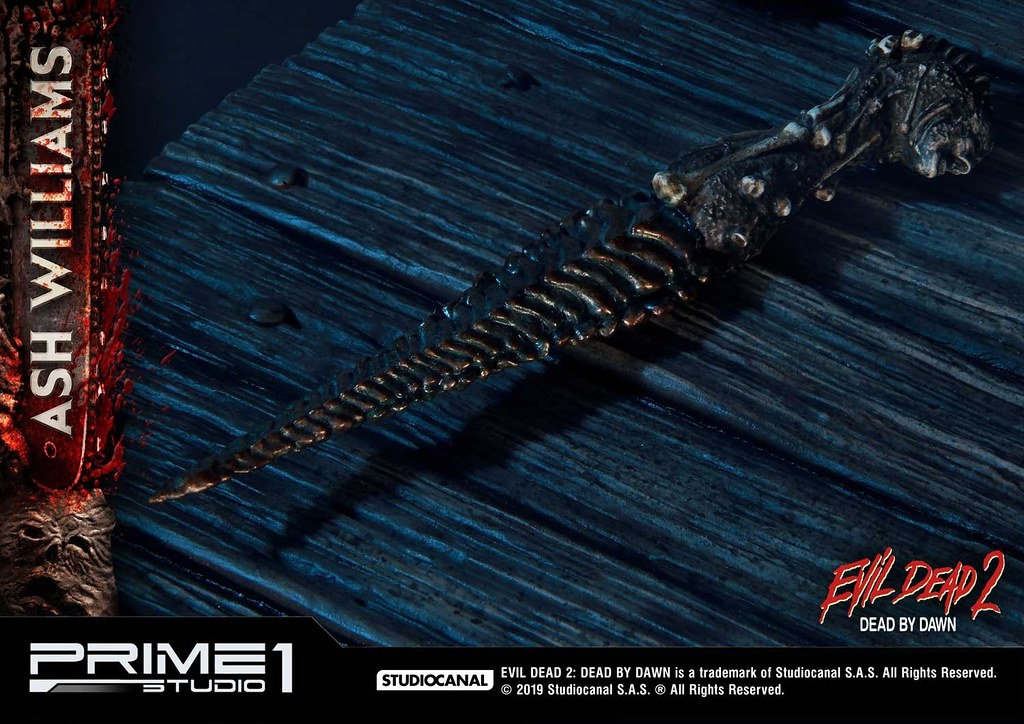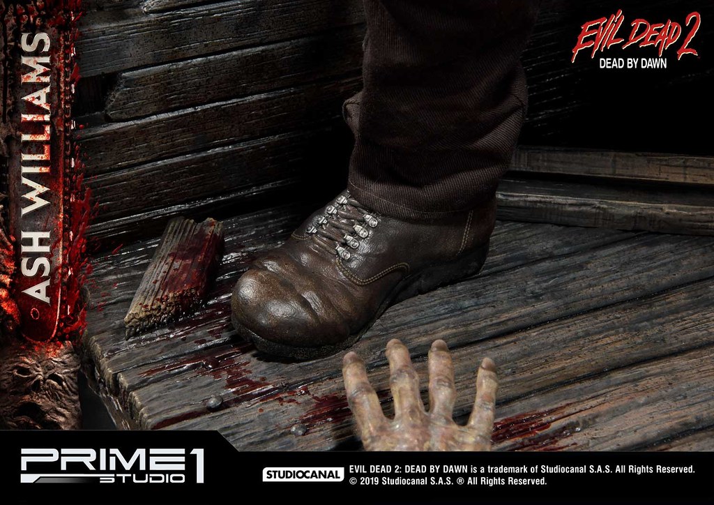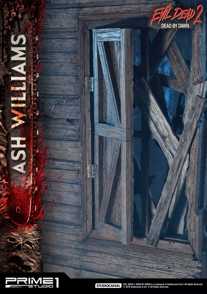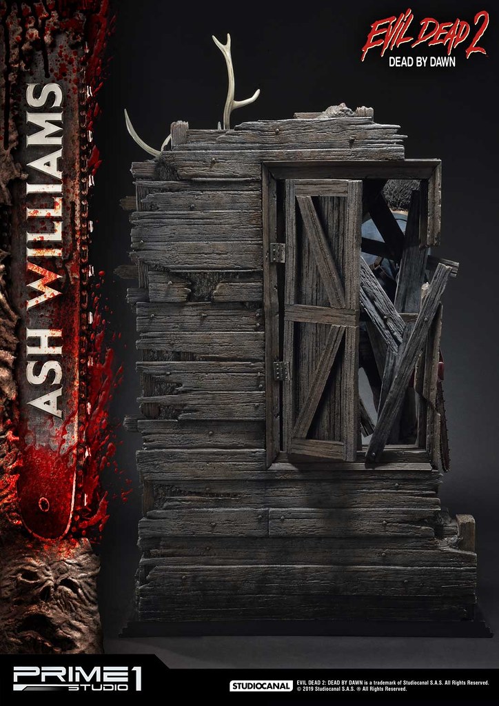 佈滿全身的傷痕、血跡,讓粉絲可以完整回味劇中艾許悲慘的遭遇,尤其腹部割傷、襯衫染血痕跡的表現非常精彩!老舊木屋場景的做工也絲毫不馬虎,除了奮力想爬出來的惡鬼外,還有許多《鬼玩人》的經典元素,像是鹿頭、艾許的斷手、匕首「Kandarian Dagger」、死亡之書,真的是讚到不行!!