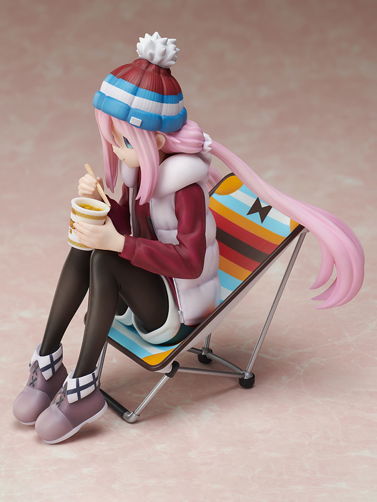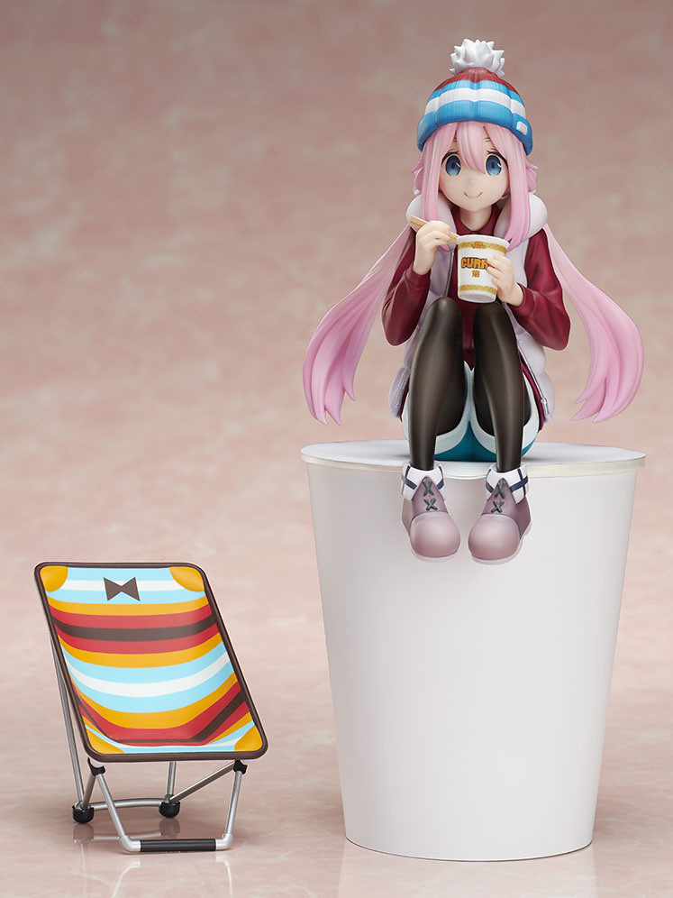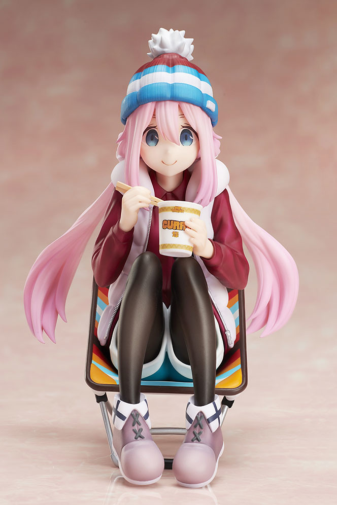 「各務原撫子 1/8比例高級泡麵蓋模型」將第一話中撫子坐在露營椅上、滿足地吃著咖哩杯麵的場景立體化,相比過去 Furyu 推出的泡麵蓋模型景品作工更精緻,不論是細部造型或塗裝都以高階 PVC 完成品等級製作,鮮艷色彩呈現原作明亮開朗的風格,就連杯麵中的內容也讓人食指大動。泡完麵後就能讓撫子陪你一起吃麵,彷彿和她一同在山梨縣的某個營地中度過暖心悠閒的夜晚呀~