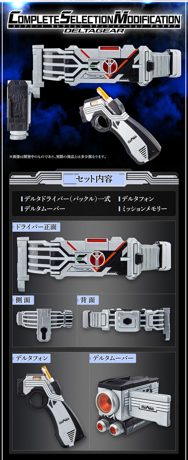 「Delta Gear 變身腰帶+裝備組」收錄了變身腰帶「Delta Driver」、槍把式聲控變身手機「Delta Phone」、數位攝影機型複合武裝「Delta Mover」、驅動專用裝備的記憶卡型裝置「Mission Memory」。