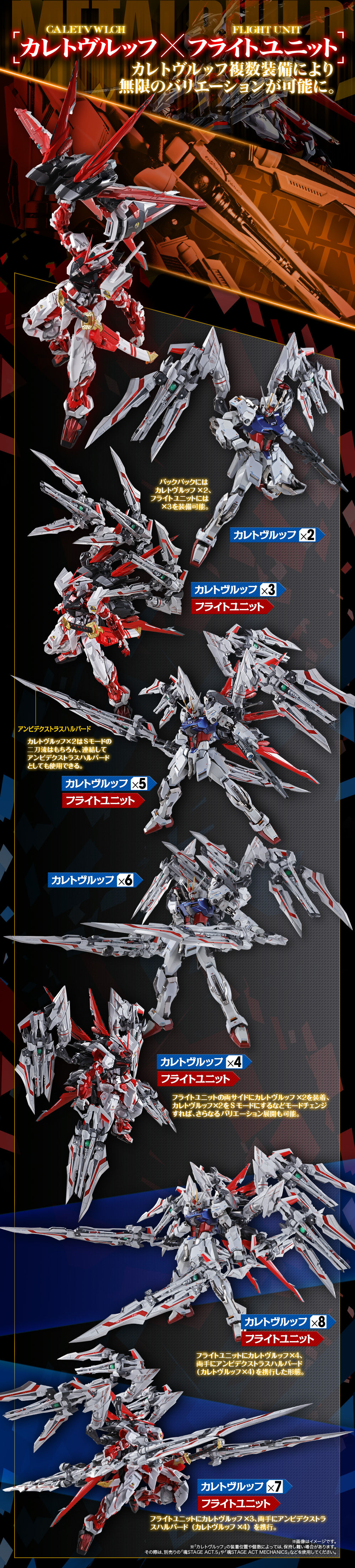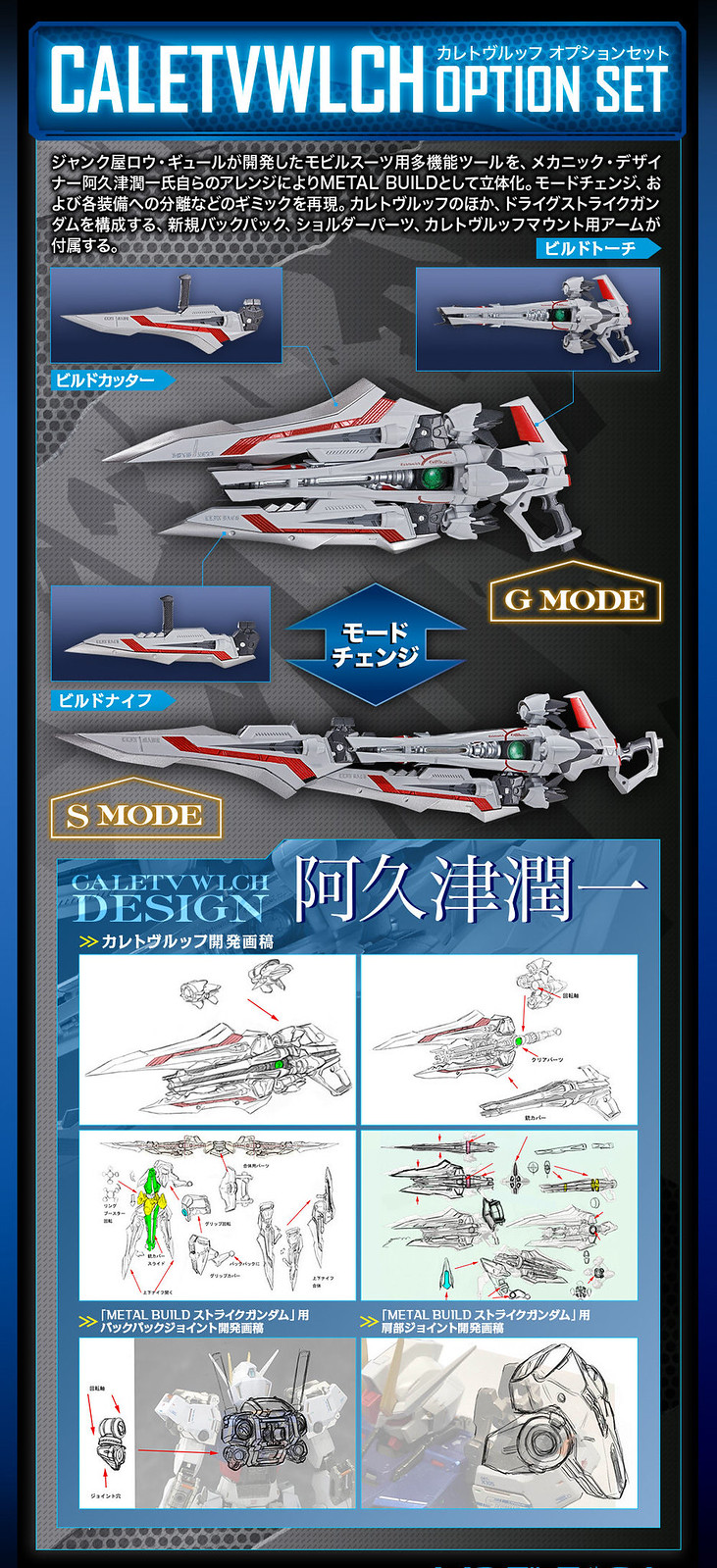 由日本 BANDAI SPIRITS 公司收藏玩具事業部「TAMASHII NATIONS」發行,集結究極造型設計、可動性與金屬質感的超人氣合金玩具「METAL BUILD」系列正式宣佈展開《機動戰士鋼彈SEED》新 MSV 企劃『METAL BUILD Alternative Strike』,第一彈商品「烈雷劍(カレトヴルッフ)」預計於 2020 年 01 月發售。